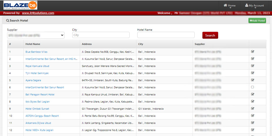 Manage all your suppliers for hotels, car-rentals, transfer etc