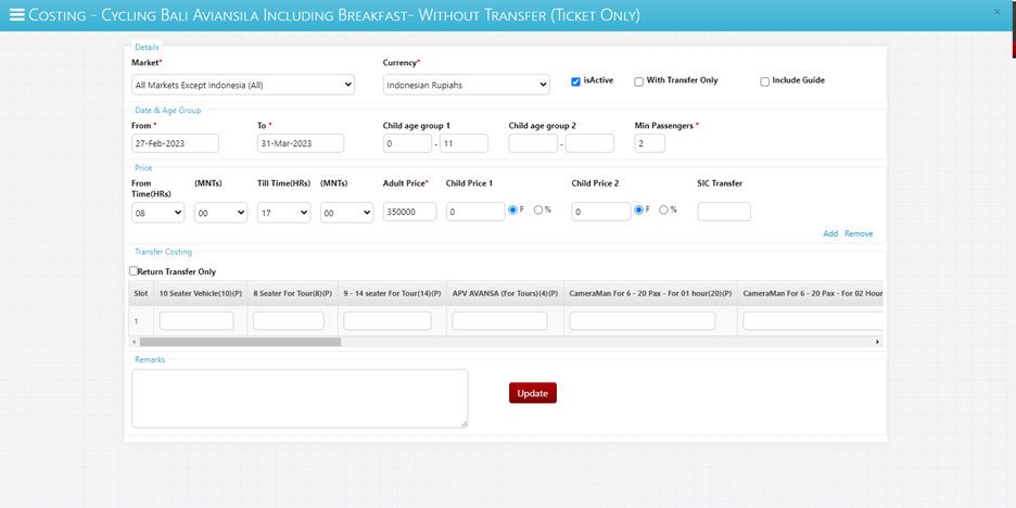System allows for centralized contracting Hotel, Transfer etc.