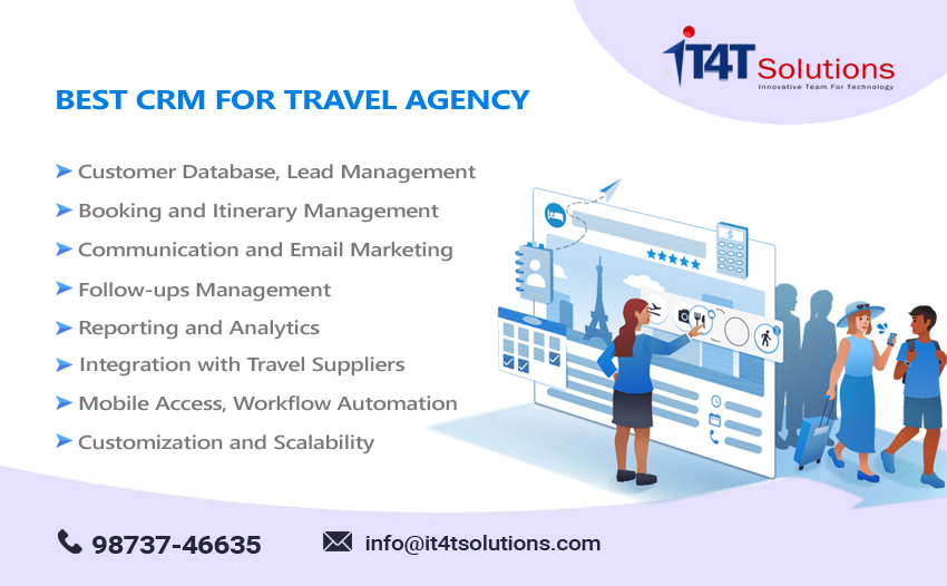In this time, IT4T Solutions is a leading Travel Software Development Company provides the best Travel CRM Software for travel companies to automate day to day operations such as lead management, responding to queries, follow-ups, automated email to increase business leads and sales efficiency.